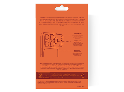 CamGuard gir robust og elegant beskyttelse til iPhone-kameraet ditt. Anodisert aluminium og dobbelt herdet glass med diamantlignende belegg beskytter effektivt mot riper uten å gå på bekostning av bildekvaliteten. Resultatet er skarpe, klare bilder og et design som matcher telefonen perfekt.
