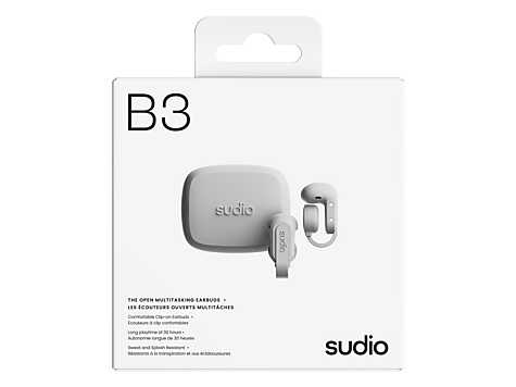 Sudio B3 er åpne ørepropper som lar deg høre omgivelsene samtidig som du lytter til musikk eller podkast. Med opptil 30 timers total spilletid er de laget for en aktiv hverdag.