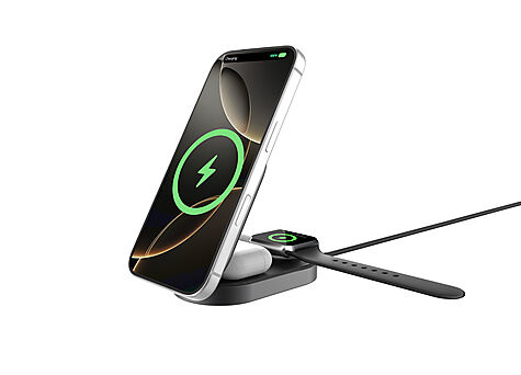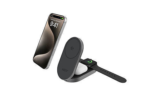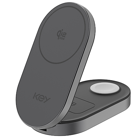 Gjør ladingen enklere med KEY GRS Qi2.2 25W 3‑i‑1 MagSafe trådløs lader. Det sammenleggbare designet gjør den enkel å ta med på reise, samtidig som den holder oppsettet ryddig hjemme eller på kontoret. Laderen støtter Qi2.2 og gir opptil 25 W hurtiglading for iPhone 16–17, samt egen ladeplass for AirPods og Apple Watch. Alt lades samtidig – raskt og stabilt.